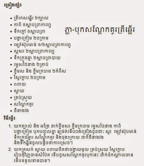 How to cook Plear Bouk San Deak Kour Trey Chha air ?